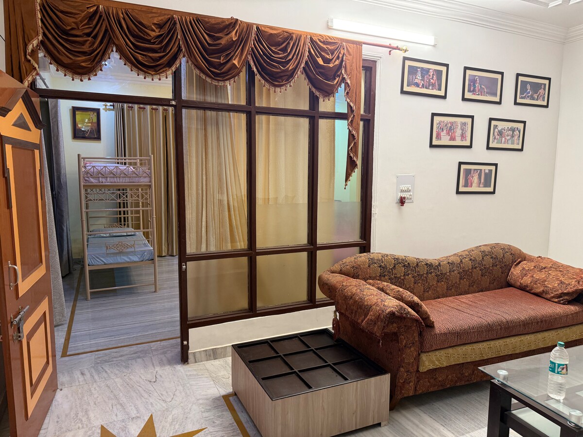 Nivas in Gomti Nagar: Войдя в парадную дверь, вы входите в гостиную с кухней и верандой слева и главной спальней спереди. В главной спальне установлена двуспальная кровать и примыкающая ванная комната. Во 2-й спальне также есть собственная ванная комната и балкон. На кухне есть все необходимое для больших или небольших блюд, включая газовую плиту, холодильник, посуду и столовые приборы.