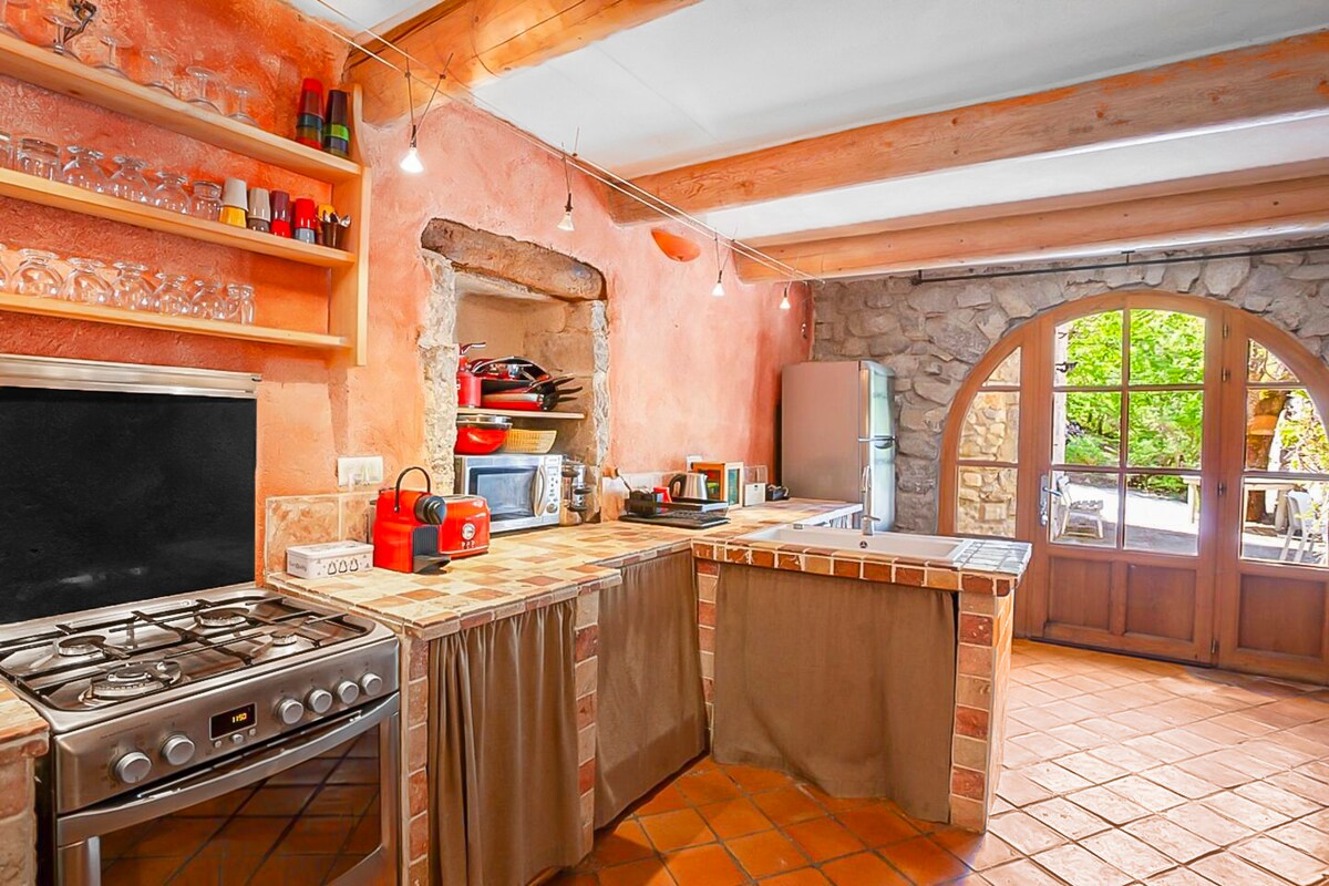 Небольшой горный дом со всеми необходимыми удобствами в красивом уголке Прованса, идеально подходит для любителей природы, прогулок, спокойных и очень очень звездных ночей! Это уютное гнездо на одном уровне с террасой, подходящей для загара и чтения, выходит на лес с панорамным видом на гору. Небольшая тропа ведет из дома к бассейну и лаванде...