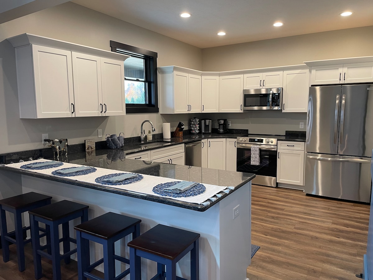 Приезжайте насладиться сказочным Блумингтоном, из вашего личного рая! Отремонтированный купольный дом площадью 1400 квадратных футов может похвастаться панорамным видом на лес и расположен на 6 акрах уединенной парковой обстановки всего в 17 минутах езды от центра города. Купол вмещает 4 гостей с открытым, разделенным (не полностью частным) лофтом с одной двуспальной кроватью и одной двуспальной кроватью размера Queen size. Есть одна ванная с туалетом, обеденная на шесть человек, гостиная на острове и полностью оборудованная кухня. К услугам гостей камин, прачечная, передняя и задняя террасы.