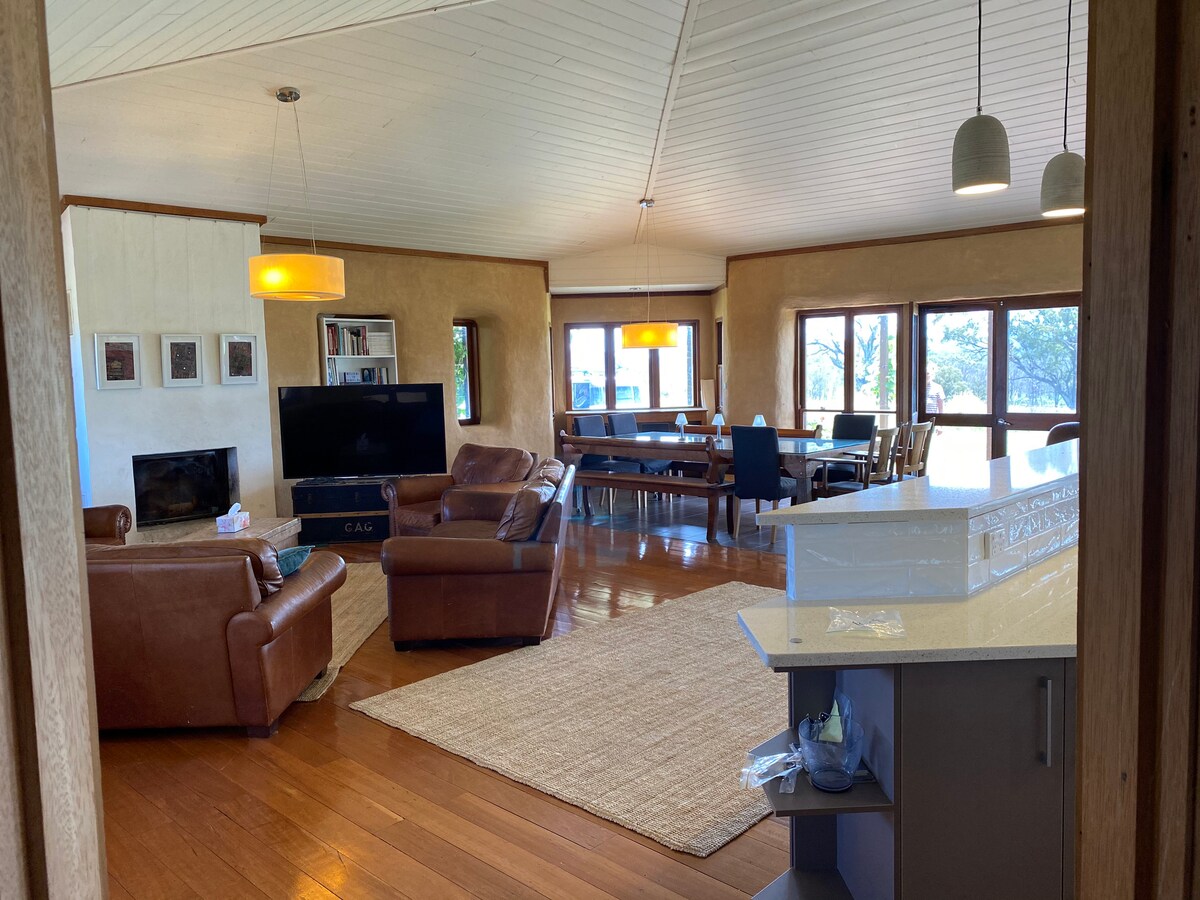 Самостоятельное жилье на территории собственного кустарника. Построенный в 2014 году из изоляционных панелей Kingspan, этот дом представляет собой витрину для солнечного пассивного дизайна; тепло зимой, прохладно летом. Мы ведем профессиональный конный бизнес на территории с квартирой для гостей. Отдельный вход, парковка на территории, 1 спальня с двуспальной кроватью размера Queen size, гостиная с телевизором, бесплатный Wi-Fi, ванная комната, полностью оборудованная кухня в красивой сельской местности, но всего в 2 км от Ураллы с едой, магазинами и пабами. Возможна зарядка электромобиля.