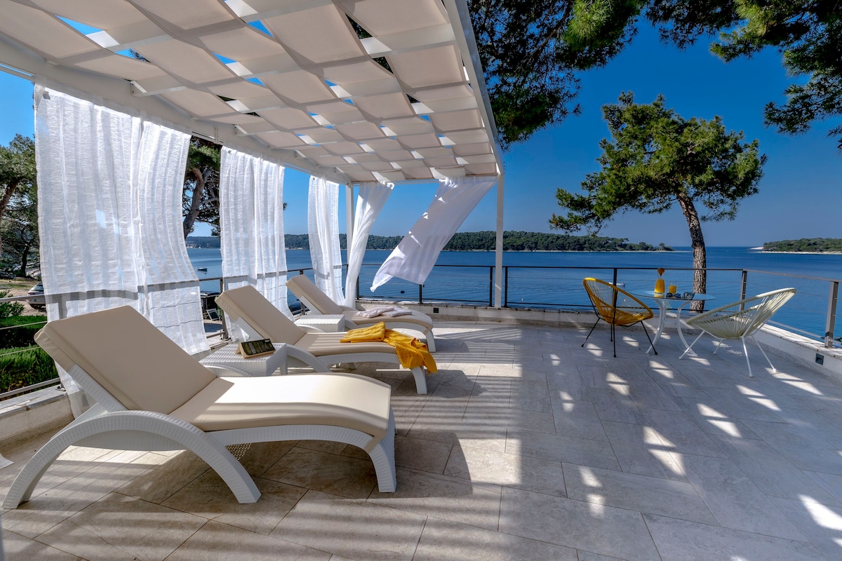 Вилла Del Mar расположена на западном побережье Хорватии. Мали-Лосинь - это остров, полный пышных высоких сосен, красивых малиновых закатов и кристально чистой воды. Совершенно новые апартаменты с видом на море с бассейном с подогревом предлагают нейтральную и современную мебель со всем, что вы ожидаете сделать дом вдали от дома. Superior имеет наружное джакузи, расположенное на террасе. Выбирайте между Superior или Deluxe в зависимости от размера вашей семьи и наслаждайтесь прекрасным и расслабляющим отдыхом.