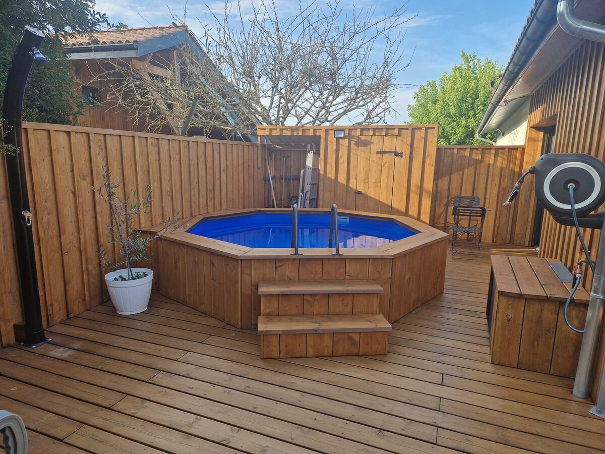 Добро пожаловать в квартиру Джули! Предлагаю вам свою квартиру площадью 50 м2 с меблированной террасой. Жилье расположено в частном доме, рядом с остановками общественного транспорта (10 минут пешком) до Бордо. В моей квартире есть спальня, полностью оборудованная кухня и гостиная с диваном-кроватью. В ванной комнате: ванна и стиральная/сушильная машина. Все будет спланировано для хорошего отдыха! (Полотенца, простыни, кофемашина, холодильник/морозильная камера, парковка...)