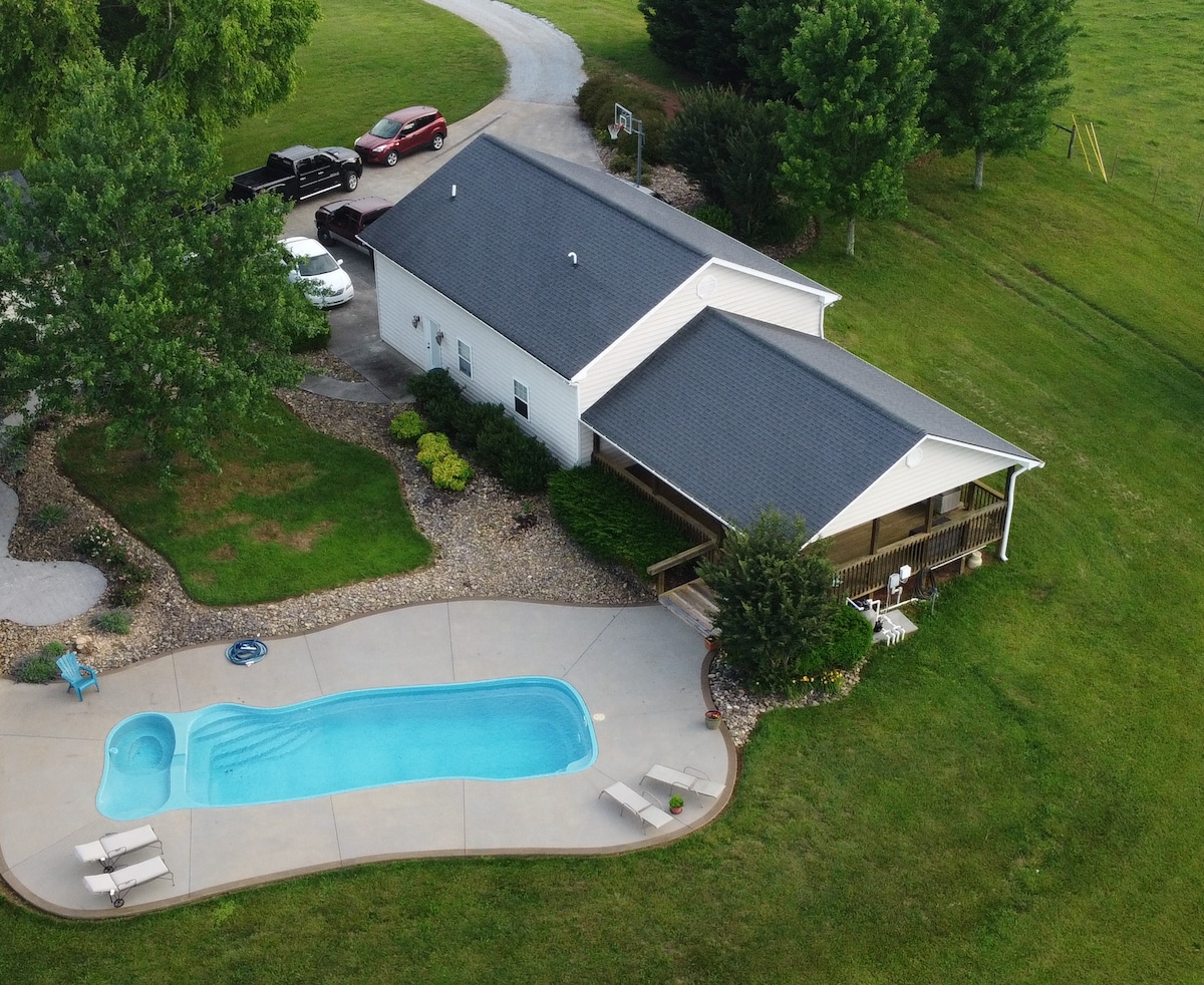 Experience East Tennessee living on a farmette in Jefferson County, TN that boasts peaceful views of mountains and countryside. Our guesthouse is equipped with all the comforts of home plus plenty of space to let you relax while still being minutes from downtown Jefferson City, Carson Newman Univ. Start your day with coffee on the large covered back porch while planning your day at Cherokee or Douglas Lake, exploring the Great Smoky Mountains or Panther Creek State Park, or visting Dollywood