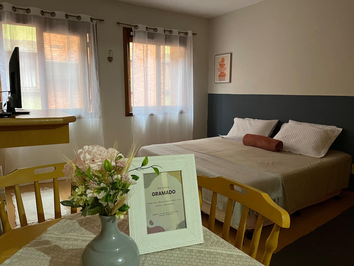 У нас есть 2 лофта, оборудованных всем необходимым для того, чтобы вы чувствовали себя очень хорошо ухоженным с комфортом, которого вы заслуживаете! Мы находимся в 5 км от центра Грамадо, примерно в 6 минутах езды на машине, в 800 метрах от рынков, ресторанов, аптек и заправки. Услуга Uber также доступна в нашем районе! Гостям предоставляется постельное белье, полотенца и некоторые принадлежности на кухне. Напитки в вашем распоряжении на выходе по пикселю. Собственная парковка. Балкон с видом на горы!
