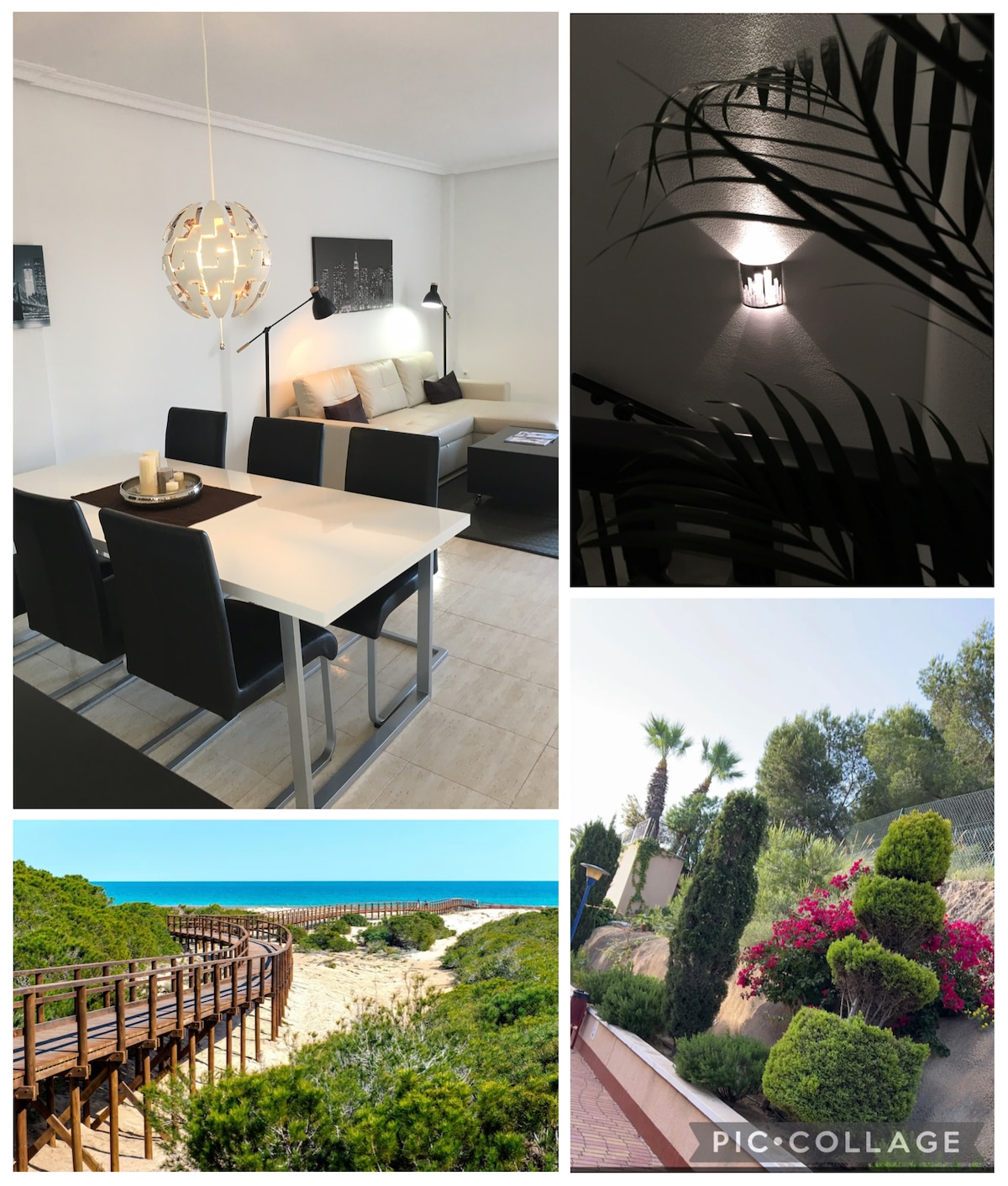 Дуплекс(бунгало). Новый, уютный дом расположен в одном из красивейших мест Costa Blanca-Gran Alacant. В 5-ти минутах ходьбы(250 м) от пляжа Carabassi(присвоен голубой флаг). Напротив урбанизации расположен природный парк, где Вы можете наслаждаться как пешими так и велосипедными прогулками. В пешей доступности расположены бары и рестораны. На общественном транспорте можно добраться до Аликанте(15мин), Санта Пола(10мин), коммерческий центр(3мин). Провести каникулы возможно без аренды машины.