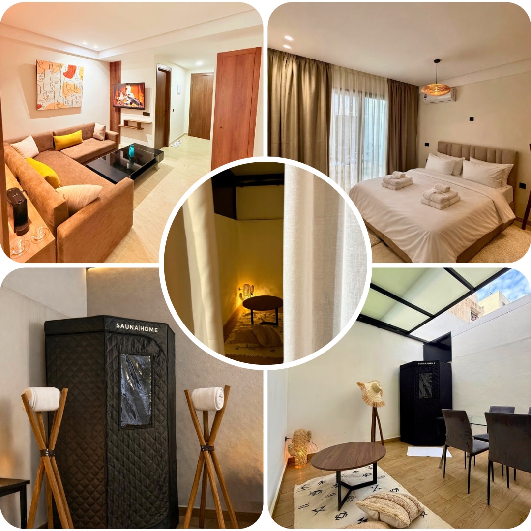 Bienvenue dans ce superbe studio moderne et haut standing idéalement situé au cœur du quartier Bourgogne proche du stade Mohamed V pour assister aux match de la CAN ⚽️ •🧖Sauna privatif pour des moments de bien-être exclusifs. •🏙️ Emplacement premium en plein centre-ville. •🚄 À seulement 10 min de la gare Casa Port. •🕌 À 2 min de la Mosquée Hassan II. •⚽️ À 5 min du stade Mohammed V. • 🍽️Cuisine entièrement équipée. • Wi-Fi haut débit + TV.