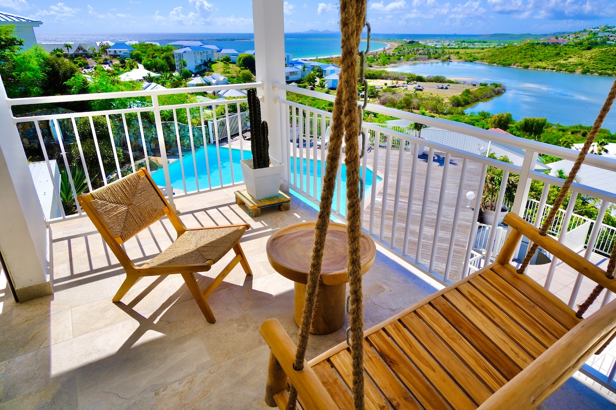 ✨ Perched above Friar’s Bay, this villa offers a breathtaking view from Maho to Anguilla. 🏡 3 ocean-view master suites, kitchen ready for a private chef. Upstairs, a covered terrace becomes a peaceful refuge facing the sea for up to 10 guests. 🌊 Pool surrounded by a suspended deck, pergola & evening serenity. 🌴 Gated residence, beaches within walking distance. Here, luxury, nature and sunsets are lived more than described.