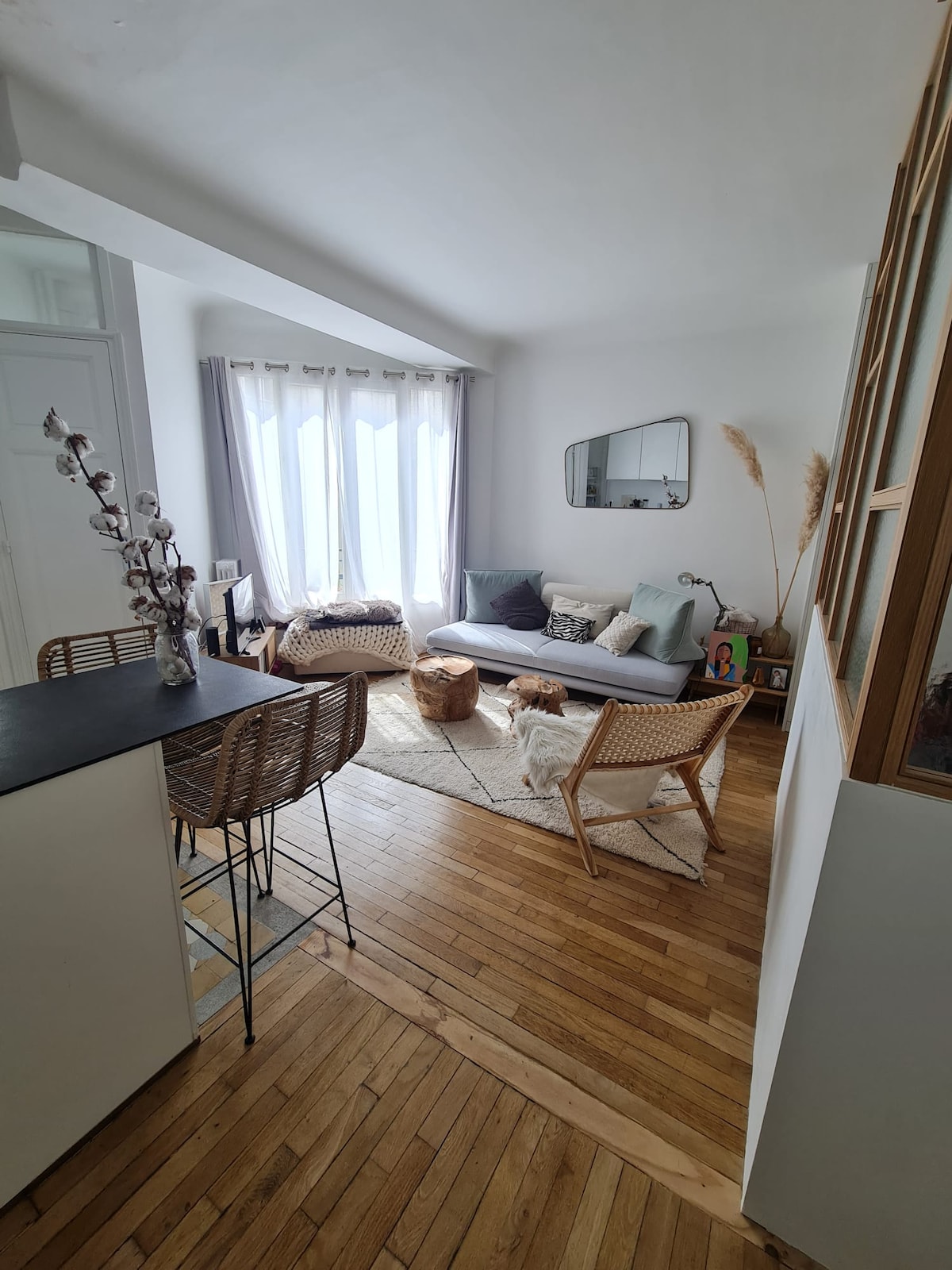 Ваша квартира, красиво оформленная с французским оттенком и подлинным материалом, полностью оборудована для вашего оптимального комфорта. Он идеально расположен в самом центре Парижа, чтобы открыть для себя исторический город и насладиться французским образом жизни. Живая среда включает в себя десятки милых маленьких ресторанов, модных баров, органических бистро, кафе, специализированные продуктовые магазины, модные магазины, пешеходные улицы. Идеально подходит для пары или небольшой семьи (дети приветствуются), а также для друзей или деловых путешественников.