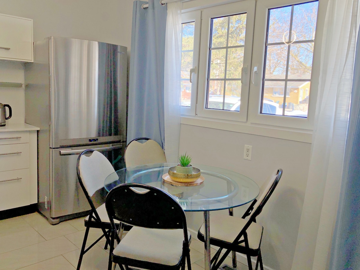 Отремонтированная и со вкусом меблированная квартира Хью площадью 1000 квадратных футов на нижнем этаже с 1 спальней и французскими дверями. Много естественного солнечного света. Полностью оборудованная кухня и бытовая техника, включая посудомоечную машину. Потрясающий новый мрамор в ванной комнате. Общая прачечная в номере с арендатором наверху. В нескольких минутах от площади 1, больницы Trillium и аэропорта. Менее 25 минут до центра города. Как и в любом доме, вы услышите шаги из квартиры выше, так как наверху уходит один арендатор.