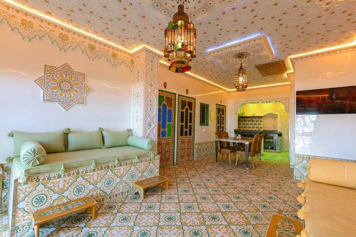 Добро пожаловать в этот отремонтированный исторический дом в стиле риад в центре Касбы*. С более чем 400-летней историей этот дом насчитывает много поколений, и теперь мы открываем его двери, чтобы поделиться простой элегантностью этого древнего города. Используя традиционные цвета с современными акцентами, мы стремимся сочетать античность с энергией наших будущих путешественников по всему миру. * Касба также пишется как Касба, Касаба или Касба - это крепость, чаще всего цитадель или укрепленный квартал города.