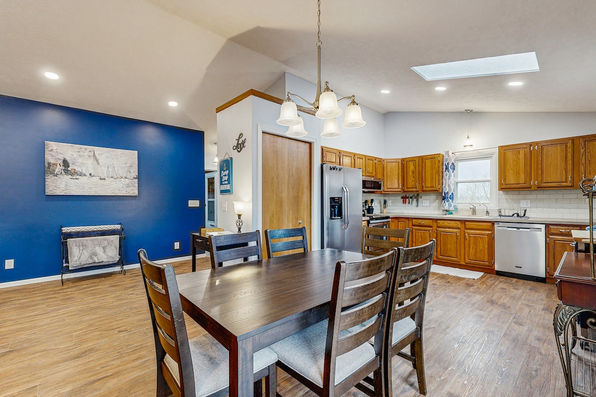 Добро пожаловать в ваш дом вдали от дома в прекрасном городе Траверс-Сити! Расположенный всего в 7 милях от центра города, этот отель предлагает идеальное сочетание отдыха, рекреации и очарования Северного Мичигана. Этот хорошо оборудованный дом, расположенный в тихом районе, предоставляет вам эксклюзивный общий доступ к Серебряному озеру, которое находится всего в полумиле отсюда. Проведите утро, ловя рыбу с причала, насладитесь пикником под соснами или разожгите гриль на берегу озера, наслаждаясь безмятежной обстановкой.
