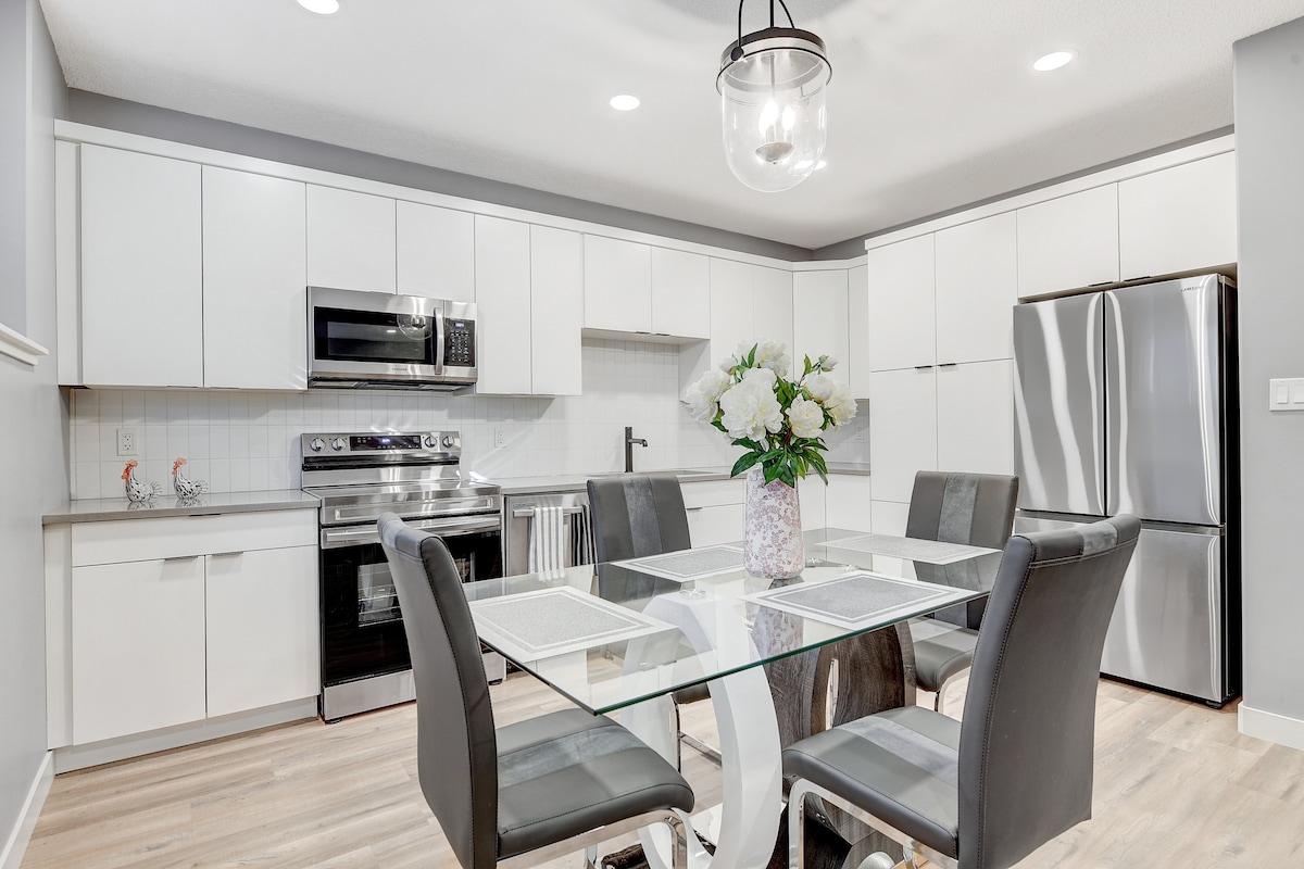 Уютный частный люкс в подвале на северо-западе Гранд-Прери. В вашем распоряжении полностью оборудованная кухня, стиральная машина/сушилка, высокоскоростной Интернет и удобная кровать размера Queen size. Жилье расположено в нескольких минутах от больницы, торгового центра и магазинов. Вход без ключа, бесплатная парковка и хозяева, живущие наверху, для вашего комфорта. Идеально подходит для индивидуальных и пар или небольших семей. Забронируйте сегодня для спокойного и комфортного пребывания!