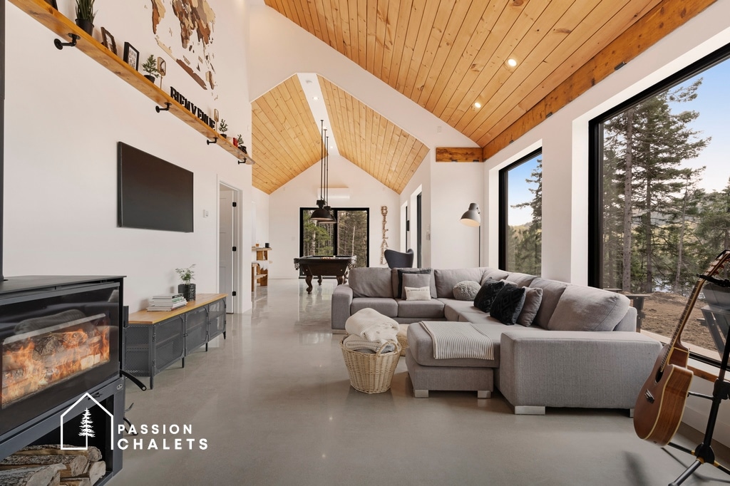 Шале Aux Toits Rouges — это туристическая резиденция, расположенная на лоне природы. У вас будет частный доступ в 1 км от дока-террасы и парковка для вашей лодки, чтобы насладиться рекой Сен-Морис. Просторное шале, расположенное в Мориси, предлагает комфорт и необходимые удобства, крытый СПА и 2 камина, чтобы провести время с семьей или друзьями. Шале идеально подходит для продления выходных и удаленной работы. Номер CITQ: 282214.