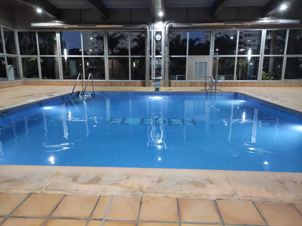 - Великолепная урбанизация в 450 метрах от пляжа. - 5 открытых бассейнов с джакузи и бассейном с подогревом, корты для паделя, теннис, баскетбол и футбол, зона барбекю, крытая парковка, детская зона, тренажерные залы и сауны (1 евро в час за пользование сауной). - 4-й этаж с большой террасой с видом на горы и бассейны в районе вдали от ночной жизни, идеально подходит для семей с детьми. - Полностью оборудованная кухня и гостиная с диваном-кроватью на двоих человек.