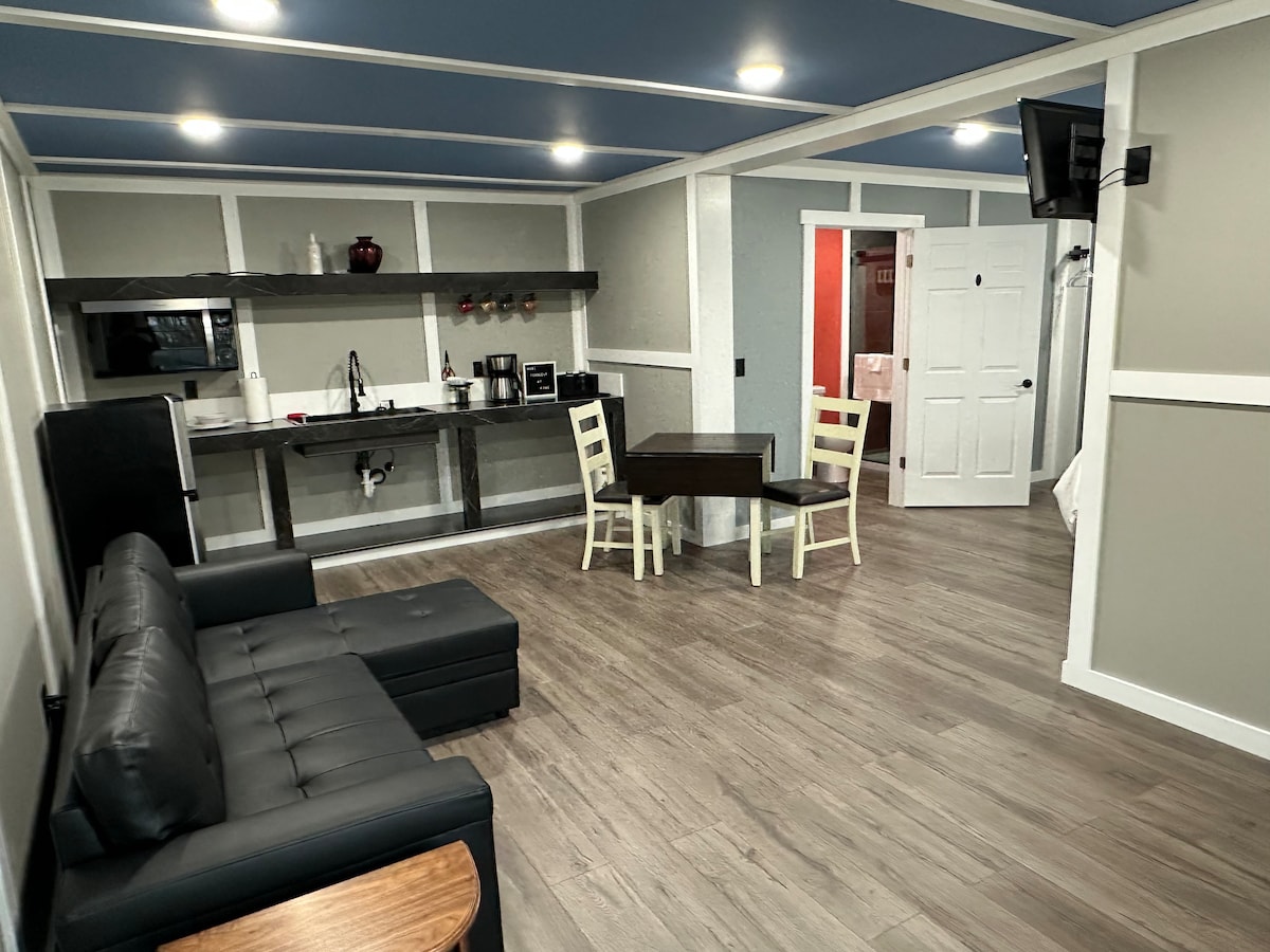 Welcome to your private in-town escape. This spacious 500 sq ft open-concept stay blends modern style with cozy comfort. Unwind in a plush king-size dream bed, refresh in the Spa-like rainfall escape shower with endless hot water, and sleep soundly with room-darkening blinds. Centrally located but designed to feel private and peaceful, with generous parking—boats and trailers are always welcome. Whether you’re here to relax or explore, this space was made for comfort.