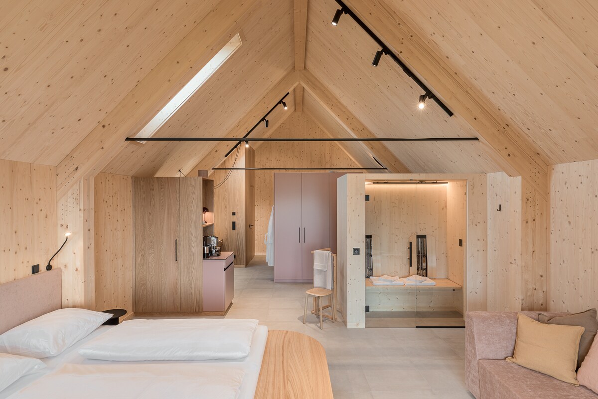 Наши пентхаусы на винограднике High Grail предлагают исключительный колорит. Здесь современная архитектура сочетается с традиционными материалами, расположенными в живописном культурном ландшафте виноградарства. Открытая планировка, отдельные мебельные острова и поверхности из натурального дерева создают уникальное ощущение пространства. В нескольких минутах ходьбы находятся многочисленные таверны и винодельни Schilcher Weinstraße. Высокий уровень — Высокие ощущения — роскошь для двоих.