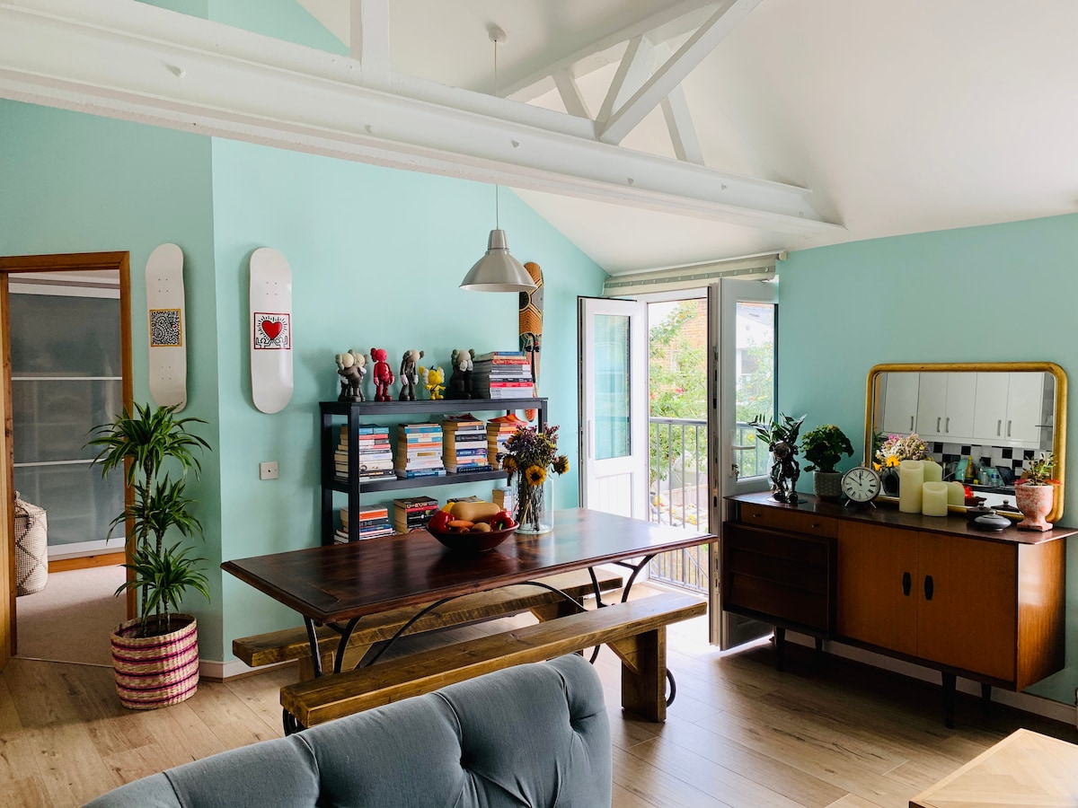 Experience the charm of East London in this unique, light-filled converted barn flat nestled within a private, gated mews. Just 20 minutes from Oxford Circus via the Central Line from nearby Mile End Station, this flat combines city accessibility with a peaceful retreat. Only a 10-minute stroll from the beautiful Victoria Park and close to lively Roman Road and Victoria Park Village, where you’ll find an array of pubs, cafes, boutiques, and flower shops.