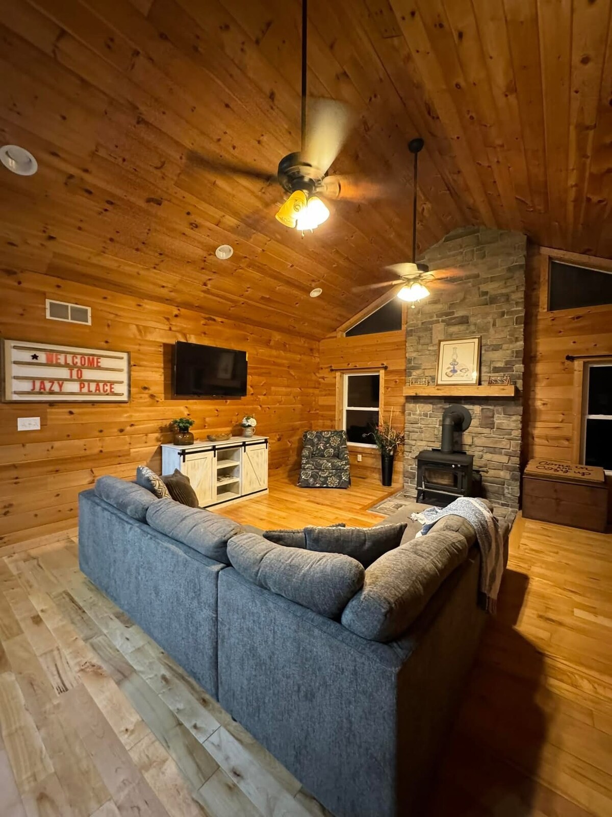 This peaceful Lakehouse cabin sits on a private lake in a beautifully secluded setting, perfect for couples, or anyone looking to unwind in nature. Though tucked away, it’s still just a short drive from local restaurants and shopping. Guests love the walking trail that circles the lake, the lower-level firepit right by the water, and the chance to enjoy catch-and-release fishing. Wildlife is abundant here, adding to the sense of escape at this hidden getaway in south-central Kentucky.