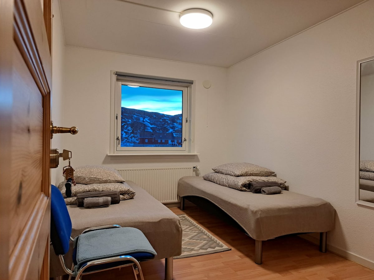 Здесь вы сможете насладиться спокойствием и одним из лучших видов на город и фьорд Нуук. Это один из лучших районов Нуука, недалеко от центра города, природы и горнолыжных склонов. Вы будете делить дом с сыном хозяина и собакой. В вашем распоряжении большая гостиная с кухней, 2 душа и туалет, стиральная машина и возможность размещения офиса.