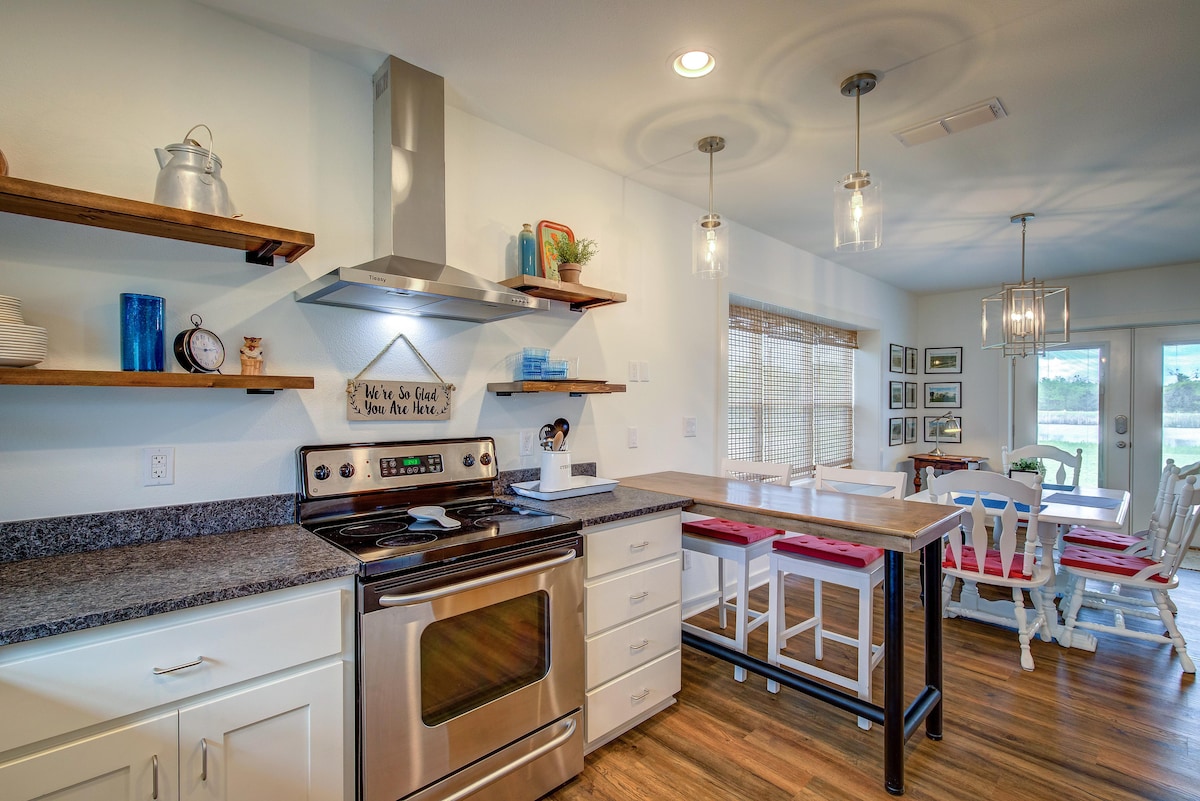 Расслабьтесь в этом уникальном и спокойном месте. Загородный деревянный дом в окружении старых дубов и пастбищ — часть фермы Blue Cloud Farms площадью 14 акров. Отдыхайте, празднуйте с друзьями и семьей — полностью оборудованная профессиональная кухня, гриль на открытом воздухе, большие жилые помещения, стол для пинг-понга в игровой комнате, костровище, корнхол, настольные игры. Идеально подходит для выходных, семейных встреч, выпускных, свадеб, кинопоказов, девичников, мальчишников, корпоративных встреч, тимбилдинга.