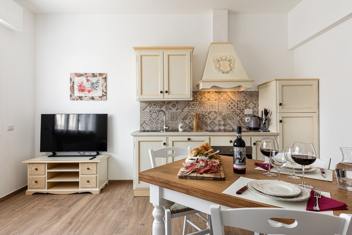 Очаровательная двухкомнатная квартира, богатая деревенскими элементами, типичная для тосканской сельской местности. В квартире, расположенной в 50 метрах от знаменитой площади Греве в Кьянти, вы найдете хорошо оборудованную кухню, светлую спальню с двуспальной кроватью, диван-кроватью в гостиной, характерную ванную комнату, постельное белье и полотенца, небольшой уголок со стиральной машиной и вешалкой для одежды. Кондинционер, фен, WI-FI, ЖК-телевизор, микроволновая печь и автономное отопление. Бесплатная парковка поблизости.