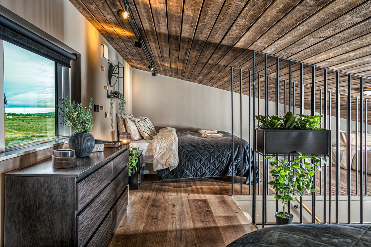Жилье представляет собой современную трехкомнатную квартиру, спроектированную исландскими архитекторами. Дом площадью 93 м2 с полностью оборудованой кухней и собственной террасой с видом на горы. К услугам гостей бесплатный Wi-Fi, Телевизор, подогрев пола, а также стиральная машина и сушильная машина. Он идеально расположен в знаменитом Золотом круге, Гейзире, водопаде Гуллфосс и Национальном парке Тингвеллир, всего в 2 км от знаменитого кратера Керирд.
