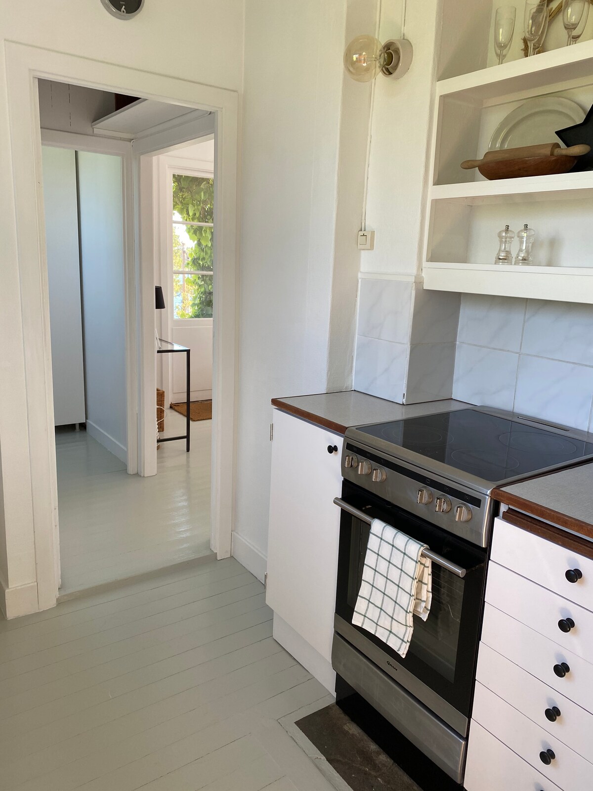 Charming 130-year-old cottage (90 m²) with a modern yet cosy feel. Two renowned spas (Yasuragi & Skepparholmen) within walking distance. Bottom floor: kitchen and dining area with classic wood stove, living room and bathroom. Your own garden and spacious wooden deck—perfect for sunbathing or BBQs. Set in a beautiful area with a crystal-clear lake for bathing just 200 m away, with a nature reserve surrounding it. Sea dock ~700 m. 30 minutes to Stockholm by Waxholm boat, bus or car.