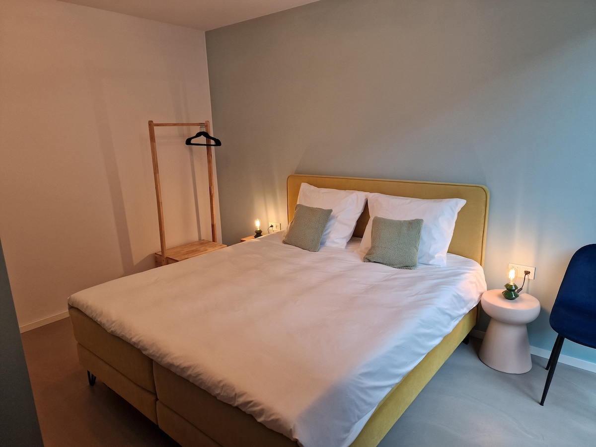 Этот красивый люкс находится внизу на мельнице с красивыми высокими потолками и окнами, вы можете наслаждаться районом в полной мере. Вы входите в гостиную люкса, кроме того, в люксе есть отдельная спальня с большой полуоткрытой ванной комнатой с ванной и банными принадлежностями от Maris Stella Marie. Люкс также оборудован кроватью Stack, поэтому в дополнение к романтической ночевке он также подходит для спокойного семейного отдыха. Есть мини-кухня с кофемашиной Nespresso.