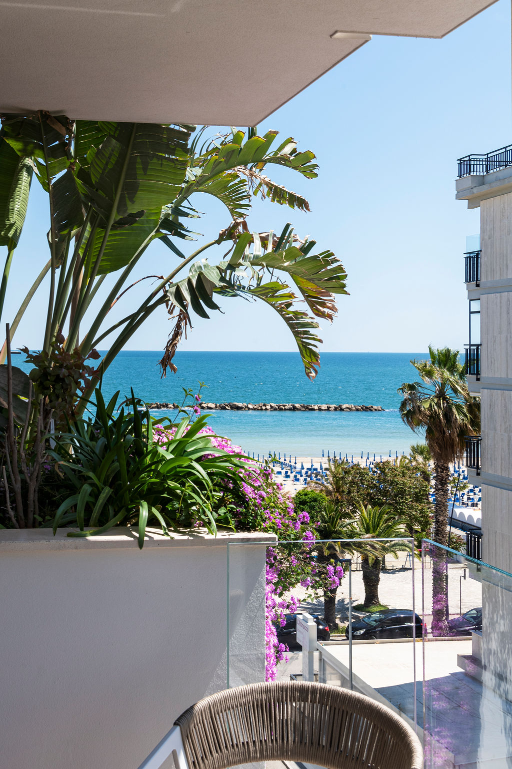 На пляже, терраса с видом на море