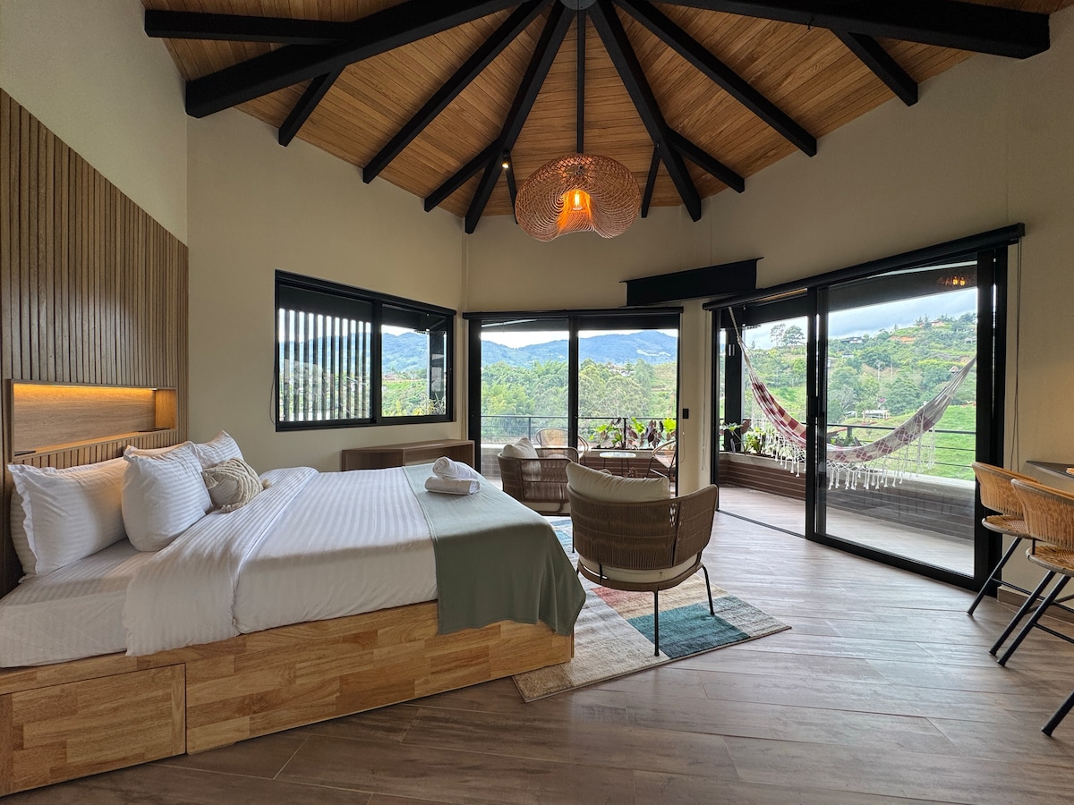 FORESTA is a modern cabin created with love for you to have an unforgettable stay in the middle of nature, with total comfort. Enjoy the privileged views from the deck, chill out in the jacuzzi, watch the dozens of birds that visit us, or have a chat by the fireplace in the living room. FORESTA is a great launchpad to explore Guatape, climb the Rock and do kayaking, jet-skiing, wakeboarding, sailing, paraglading, horseback riding, hiking, helicopter tours or ATV rides. You choose!