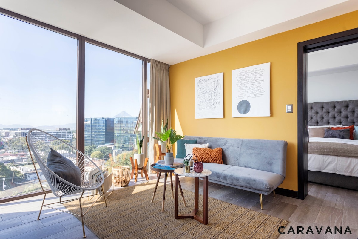 ★НЕТ СБОРА ЗА УСЛУГИ AIRBNB!!★ Эксклюзивное преимущество для гостей CARAVANA Почувствуйте пребывание в совершенно новой квартире Guatechula с цветовым дизайном для куркумы, соединяясь с белыми стенами, соединяющими спокойствие и спокойствие. У вас будет возможность остановиться рядом с торговыми центрами, ресторанами и гостиничной зоной менее чем в 10 минутах ходьбы. В квартире Guatechula есть общие удобства, такие как тренажерный зал и общее рабочее место для использования.