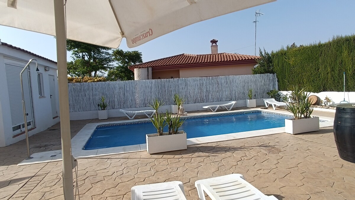 Уютная вилла с бассейном (теперь с телескопическим покрытием и тепловым насосом) и 300 м2 сада, полностью частная, окруженная дубовыми деревьями. Всего 20 минут до Севильи на машине. Собственная парковка. Отдохните от рутины в этом уникальном и расслабляющем месте. Интерьер: основная комната — гостиная/столовая с полностью оборудованной встроенной кухней. Спальня с гардеробной. Из больших окон гостиной открывается вид на сад и бассейн. VUT/SE/15003