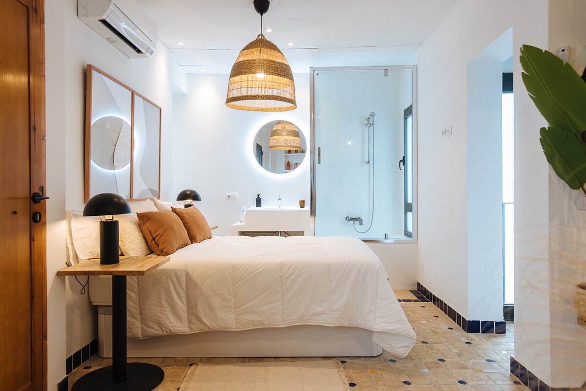 Красиво отреставрированный таунхаус, переоборудованный в современное отпускное жилье, отмечает старое здание с теплыми современными интерьерами и соприкосновением с индустриальным стилем. От пола до потолка, французские окна выходят на традиционные балконы на очаровательную улицу внизу. Солнечный свет заливает пространство открытой планировки, проливает свет на открытые стены из песчаника и освещает потрясающие дубовые потолки. С общей террасы на верхнем этаже открывается невероятный вид на крышу собора и Хиральду.