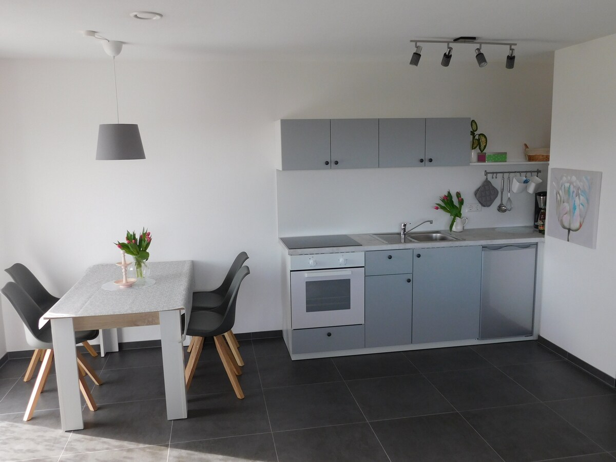 Наша новая квартира расположена на первом этаже. Она полностью оборудована площадью 54 м². В квартире одна спальня, ванная комната, хорошая столовая,- гостиная с раскладным диваном-кроватью. Также можно использовать просторную террасу с гостиной и зоной отдыха, включая большой сад с рамой для скалолазания для детей. В нашем районе много достопримечательностей, например Legoland, Steiff Museum. Квартира не подходит в качестве механика,- в квартире работника.
