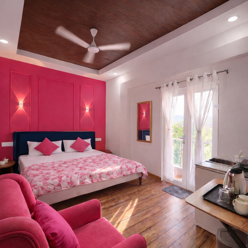 CasaVue is a premium 2BHK river-view stay overlooking the Brahmaputra and the iconic Umananda Temple. The home features two spacious bedrooms with attached bathrooms, AC, geysers, hotel quality linens, and a smart TV with high-speed Wi-Fi. A large balcony, cozy boho interiors, and a peaceful environment make it ideal for families and couples seeking a luxurious yet homely stay,perfect for both short and long stays.
