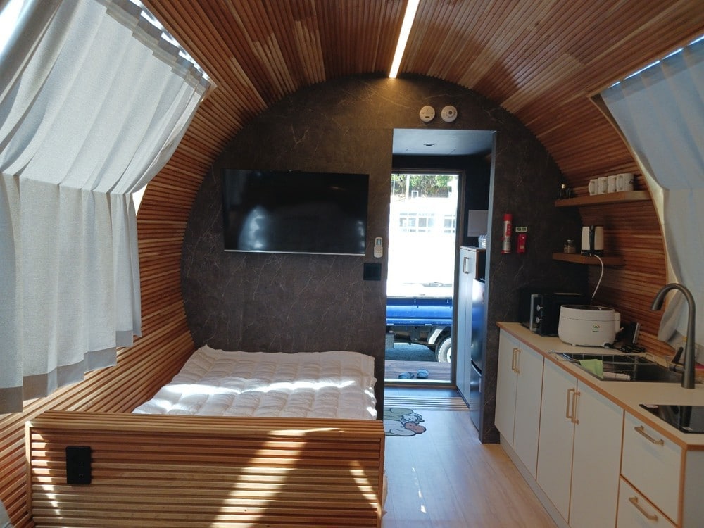 안녕하세요. 저희는 다양한 휴식 공간을 연구하고 제공하는 ONDA입니다. 이 곳에서 머무르실 모든 분들께서 편안하고 행복한 시간을 보내기를 바랍니다. [숙소 소개] 반려견과 함께하는 감성캠핑장! 거제 반려견 동반 캠핑장 캠프빌리지 입니다. 24년 신규 오픈된 숙소로 원목 감성 카라반입니다. : ) 우천 시에도 이용할 수 있는 개별 바베큐장이 있습니다. [객실 유형] 원룸형 (더블1,싱글1+화장실1) * 침구는 예약하신 인원에 맞게 제공됩니다.
