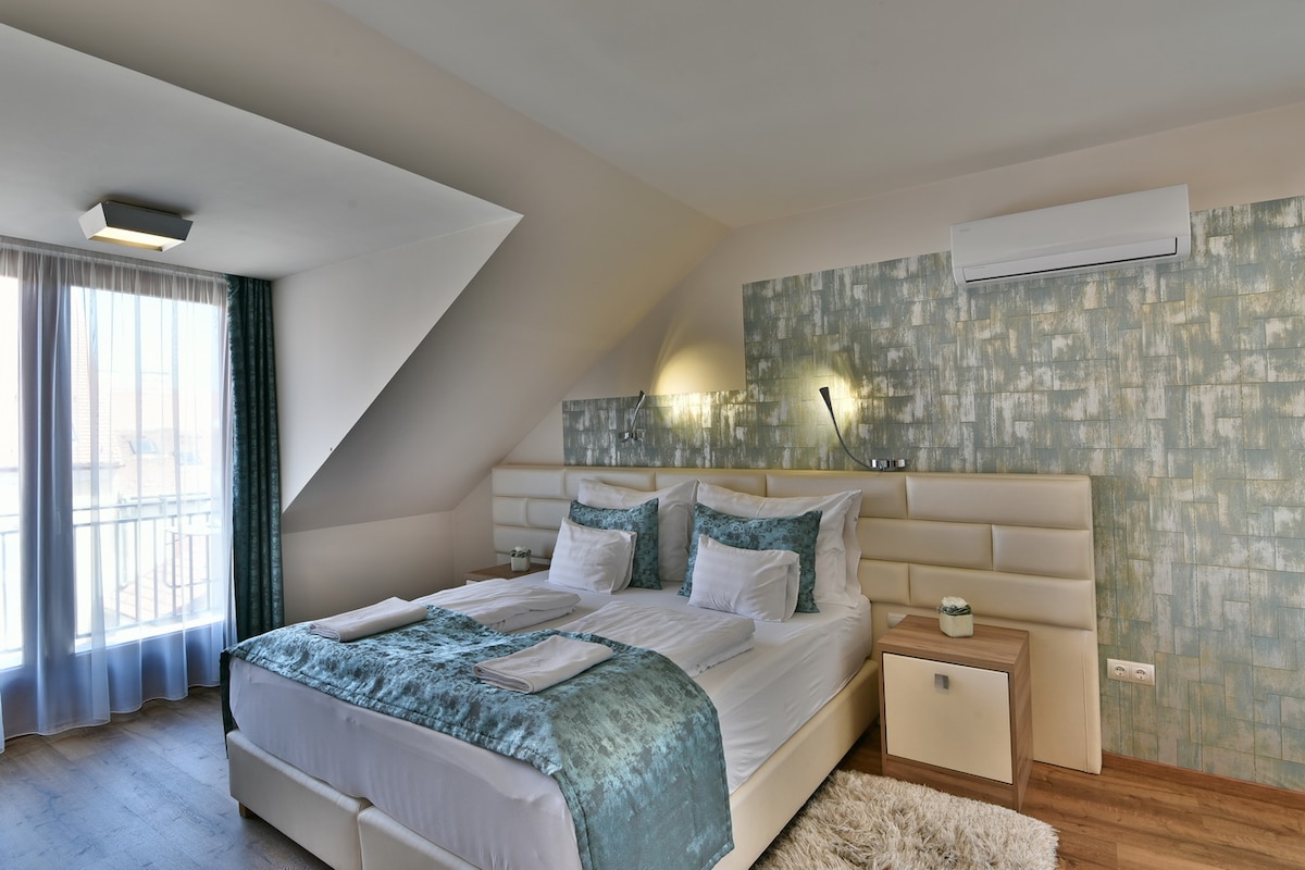 Эта роскошная квартира в центре Дьёра расположена в полностью отремонтированном здании, состоящем из 15 квартир с уникальным дизайном. Этот был вдохновлен апартаментами-лофтами с высокими потолками, что отражается в материалах, цветах и узорах. Приезжаете ли вы исследовать город или просто проходите мимо, это место рядом с главной площадью и Дунаем является идеальным выбором и имеет все удобства, которые могут вам понадобиться для короткого пребывания.