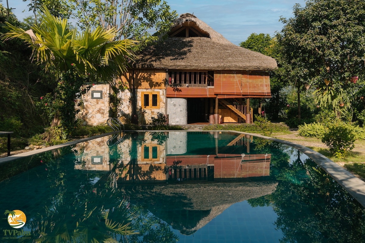Escape to the hills of Tha Village, Phuong Do Commune, where nature meets culture. Our stilt house, inspired by the traditional Tay architecture, blends rustic charm with modern comfort — featuring wooden interiors, a bathtub. We follow sustainable practices, limit single-use items, and use local products whenever possible. Stay in cozy queen or single rooms with private bathrooms nearby. Enjoy authentic local life — garden, cook, try Tay costumes, or herd buffaloes with villagers.