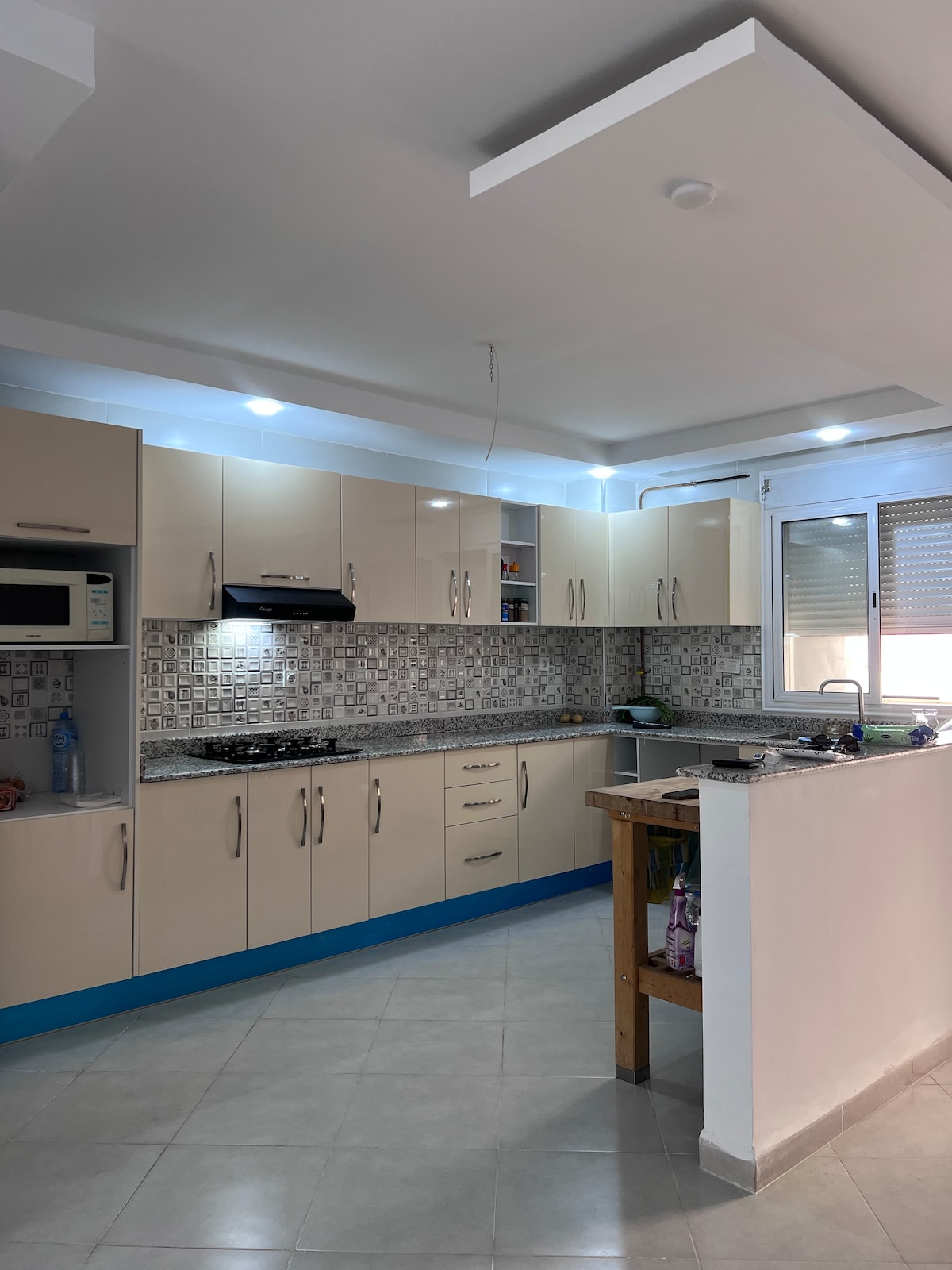Un appartement meublé avec goût , vous vous sentirez chez vous dés la première minute, la vue imprenable sur la mer et le confort de la maison vous fera oublier le stress de la ville . Une cuisine parfaitement équipée , une terrasse avec une grande table et un espace barbecue pour apprécier de bonnes grillades en famille, une literie propre et confortable vont vous réconcilier avec le sommeil . Cet appartement est destiné uniquement aux familles avec présentation d’un livret de famille .