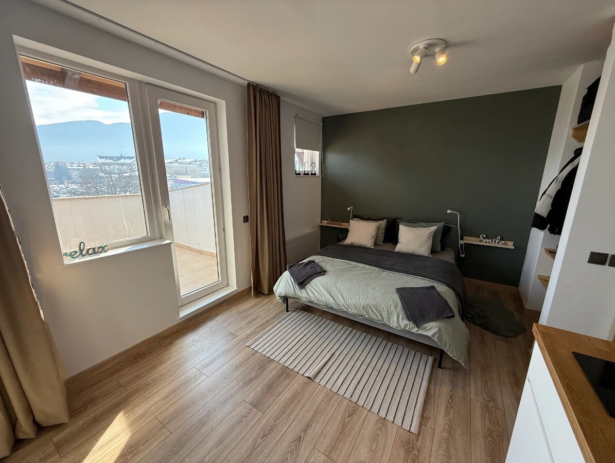 Если вы ищете тихое жилье для идеальных ворот. Это демонстративно ваше жилье. Эта современная квартира с 1 спальней и альпийским дизайном интерьера подарит вам теплые ощущения после дня в горах. Сам комплекс расположен в красивом горном районе у подножья горы Пирин, в южной части курорта Банско, к востоку от горнолыжных склонов. Бесплатная парковка! Надежный Wi-Fi покрывает всю территорию.
