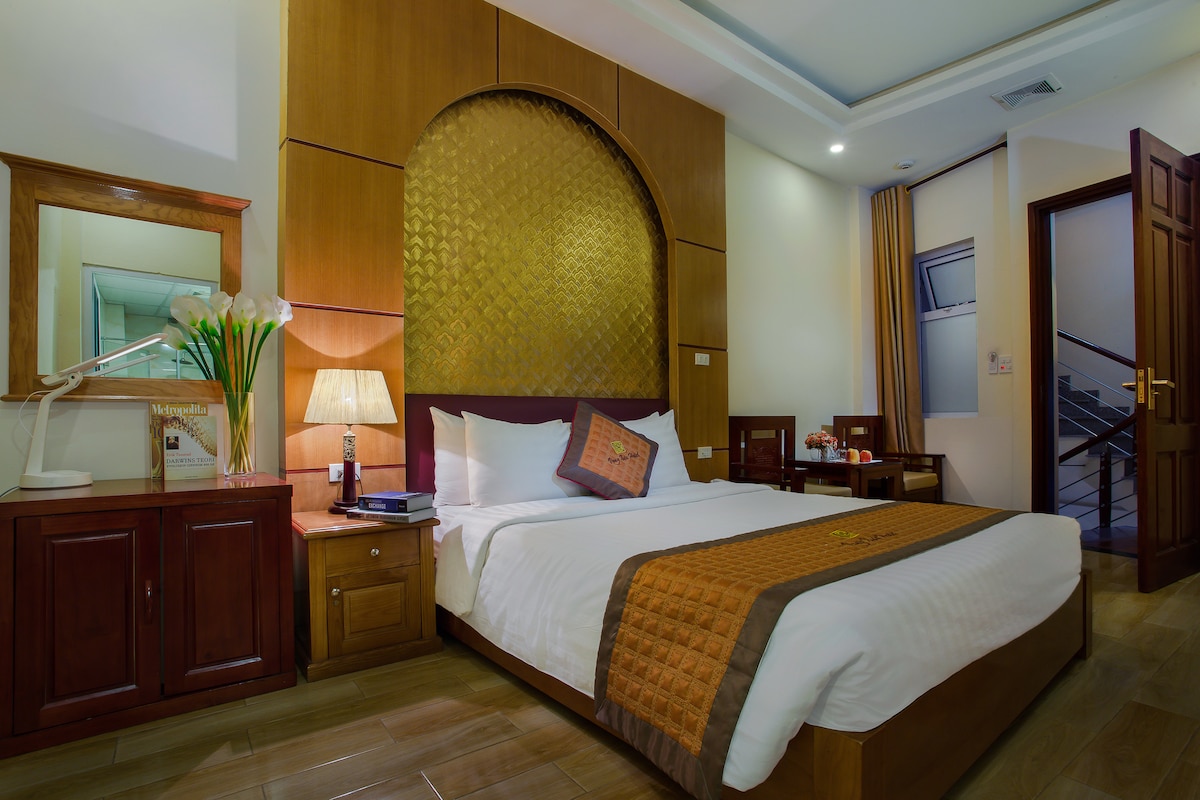 Роскошный двухместный номер Golden Double – роскошь, романтика и комфорт Роскошный двухместный номер Golden — самый роскошный выбор в отеле Golden. Просторное жилье, мягкий свет и акценты на любовном месте, обеспечивающие романтические и уединенные впечатления для пар. Особые удобства: Полноразмерная двуспальная кровать с матрасом премиум-класса. Любовное место для особого отпуска Телевизор с плоским экраном Кондиционер, рабочий стол, шкаф. Бесплатный высокоскоростной Wi-Fi. Отдельная ванная комната с горячим душем и бесплатными туалетными принадлежностями.