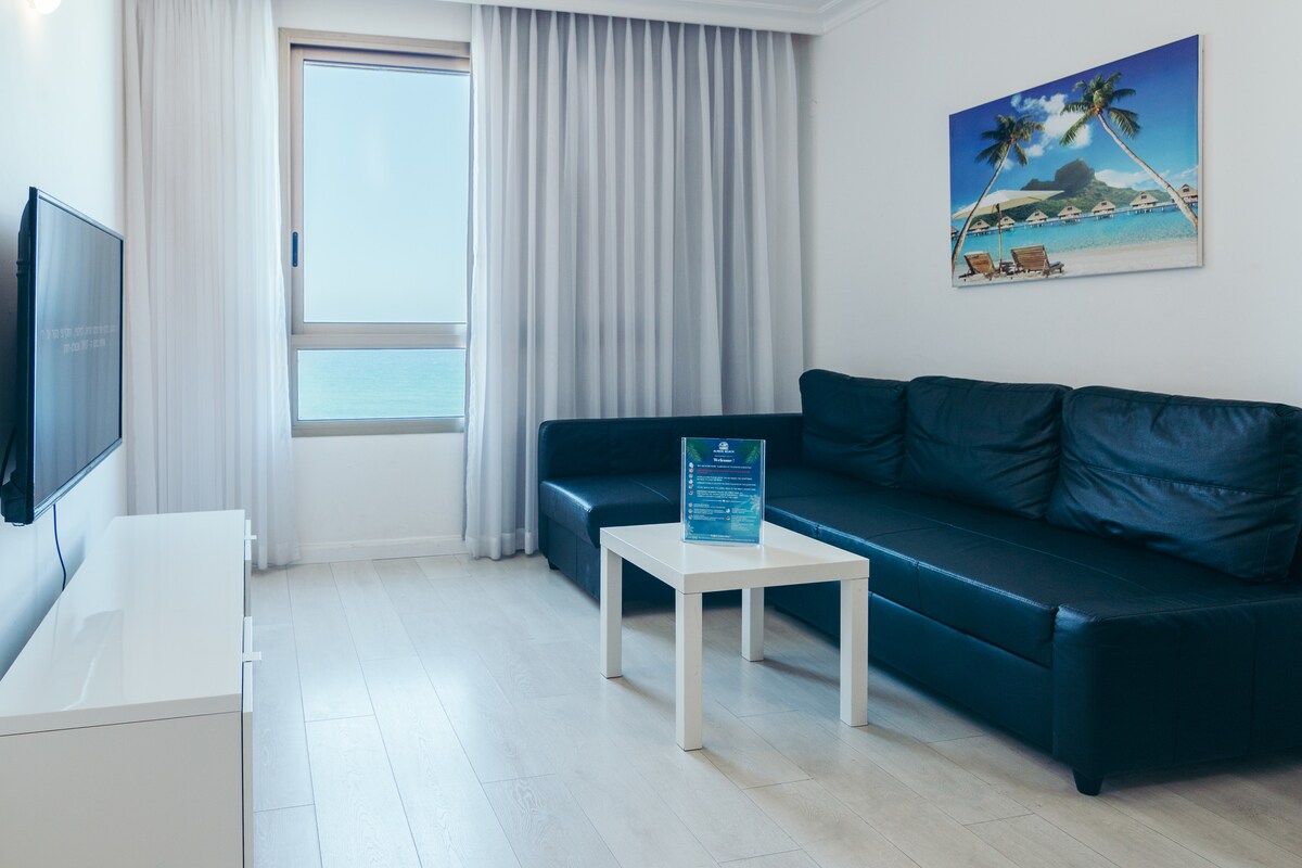 A beautiful studio apartment - 25 METERS FROM THE SEA! We welcome you to enjoy our studio with a sea-view balcony. The apartment just got renovated and it is perfect for couples. The modren style design to the smallest details - to make your stay perfect. The apartment has Air conditioning, Netflix, free Wi-Fi, a fully equipped kitchen (refrigerator, oven, espresso machine), Smart TV. our place is totally new, Great for vacation or long stay.