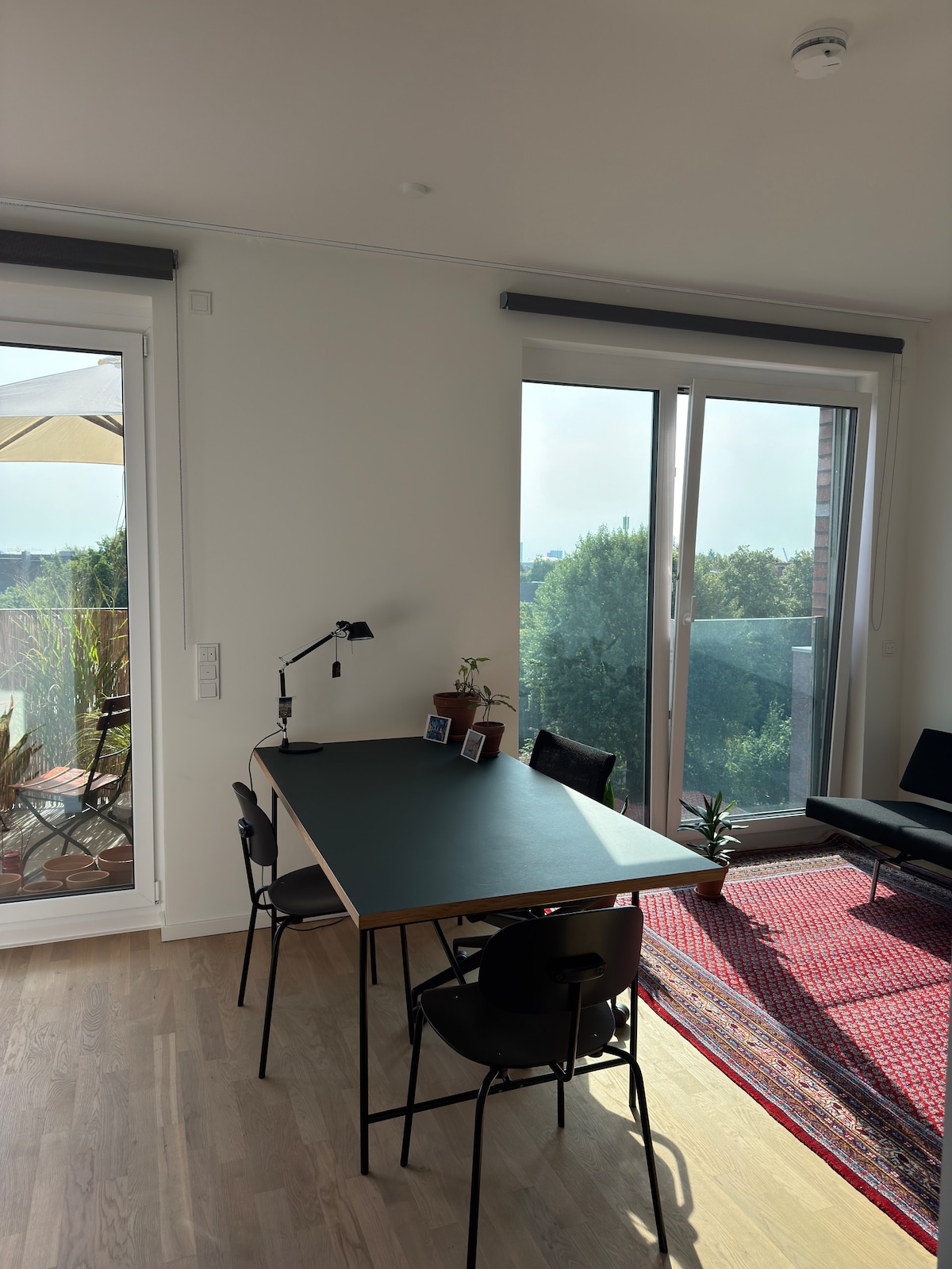 Эта просторная квартира в стиле лофта расположена в центре города между популярными районами Шанце/Альтона — прямо в центре событий, но в тихом зеленом дворе. Спальня предлагает расслабляющий отдых, а гостиная/рабочая/обеденная зона с собственной чайной/кофейной станцией приглашает вас задержаться. Большая терраса с гостиной зоной — прекрасное место для отдыха. ОБРАТИТЕ ВНИМАНИЕ: входная зона (гостиная/столовая) проходит при входе и выходе, а кухня общая.