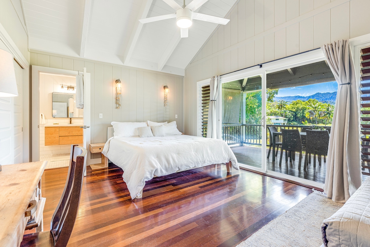 Escape to a secluded romantic haven nestled on an acre of lush gardens in Kauai’s breathtaking Wainiha River Valley. Perched on a bluff with panoramic valley views, this retreat offers tranquility and luxury. Unwind by your private pool and spa, surrounded by vibrant tropical flora, where nature creates an atmosphere of enchantment. Just a short drive away, explore some of the world’s most stunning beaches. Let this serene paradise immerse you in romance and blissful relaxation