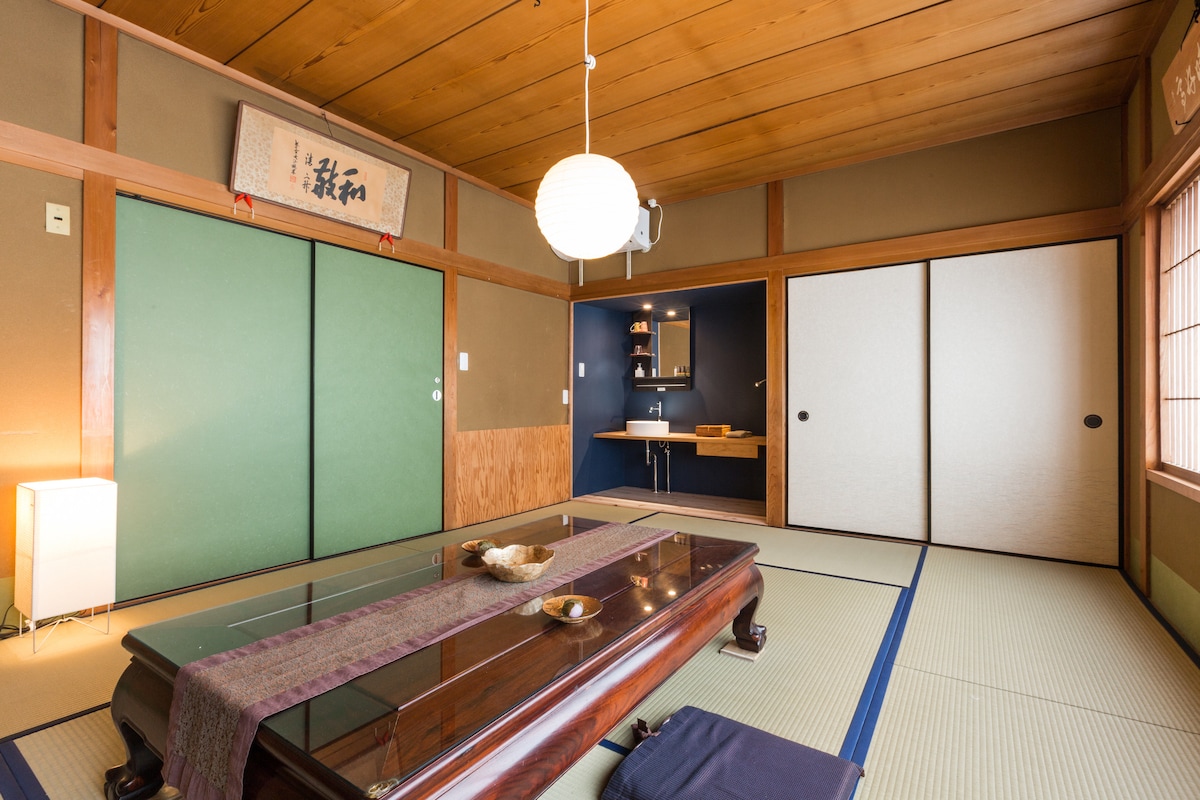 Kyomachiya Private Lodging "Takasegawa Shichijo" — это полностью отремонтированная 115-летняя кёматия. Кёматия, которая формирует прекрасный пейзаж Киото, была перестроена в здание с высокой воздухонепроницаемостью и теплоизоляцией, чтобы вы могли комфортно провести время во время влажного лета и холодной зимы, уникальных для Киото, сохраняя при этом оригинальную структуру. Из комнаты в японском стиле на первом этаже можно увидеть сад цубо (сад, ведущий в чайную комнату) с изображением «родзи». Кроме того, мы подготовили диван в коридоре, чтобы вы могли расслабиться и насладиться видом на сад цубо. Вечером вы можете расслабиться, глядя на освещенный сад цубо. На втором этаже есть 2 спальни: одна с 2 односпальными кроватями и одна с 1 двуспальной кроватью. Если гостей 5 или больше, мы можем подготовить футон в комнате в японском стиле на 1-м этаже и использовать ее как спальню, хотя это немного хлопотно. Кухня оборудована кухонной утварью и посудой для простого приготовления пищи.