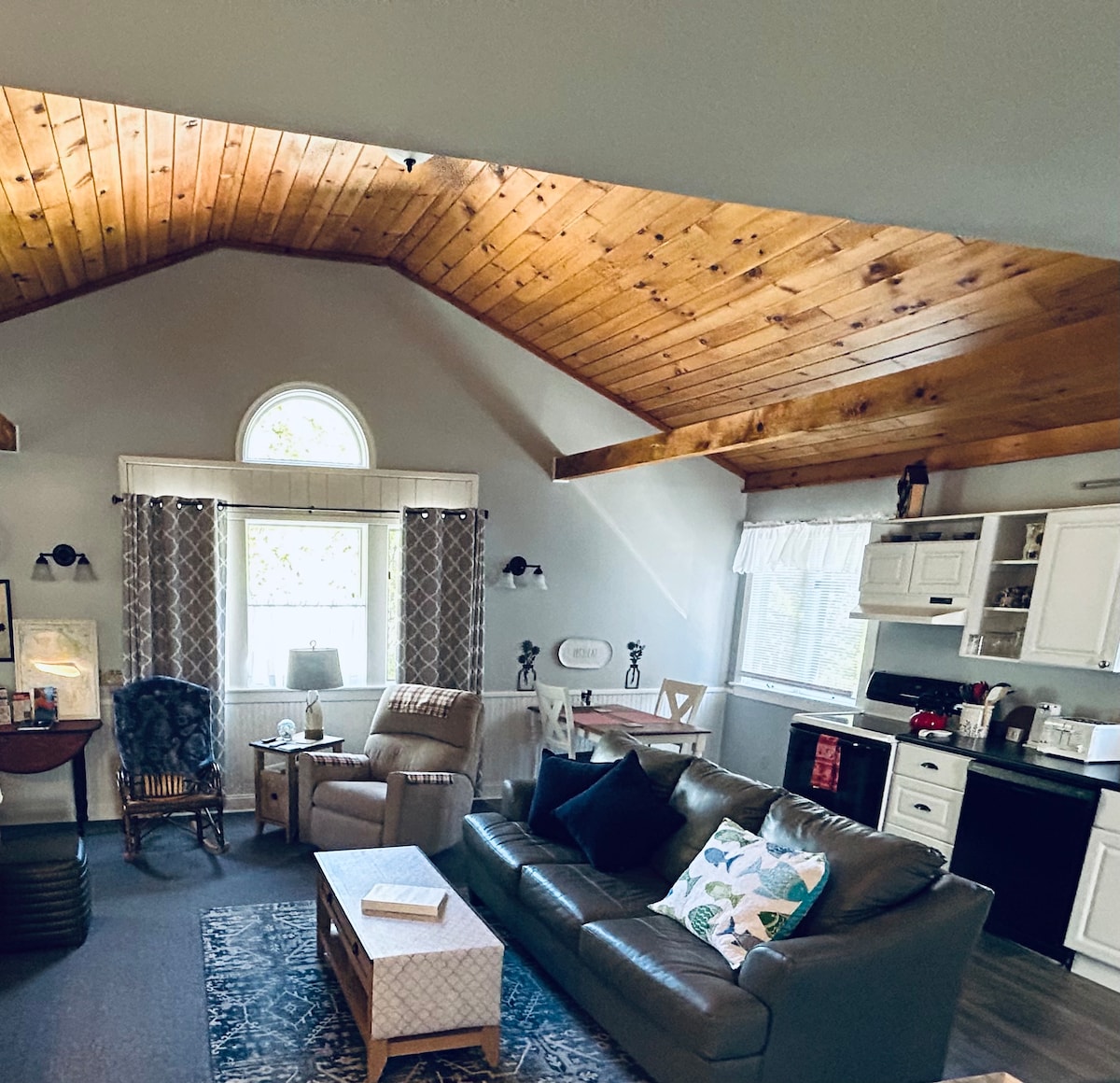 Поднимите ноги и насладитесь прохладным освежающим напитком на террасе после долгого путешествия! Недавно отремонтированная квартира с 2 спальнями над гаражом идеально подходит для отдыха. Отдельный вход и отдельная парковка. Наша семья и друзья создали здесь много прекрасных воспоминаний. Мы приветствуем вас всем сердцем и надеемся, что вы также сможете насладиться этой маленькой квартирой так же, как мы!
