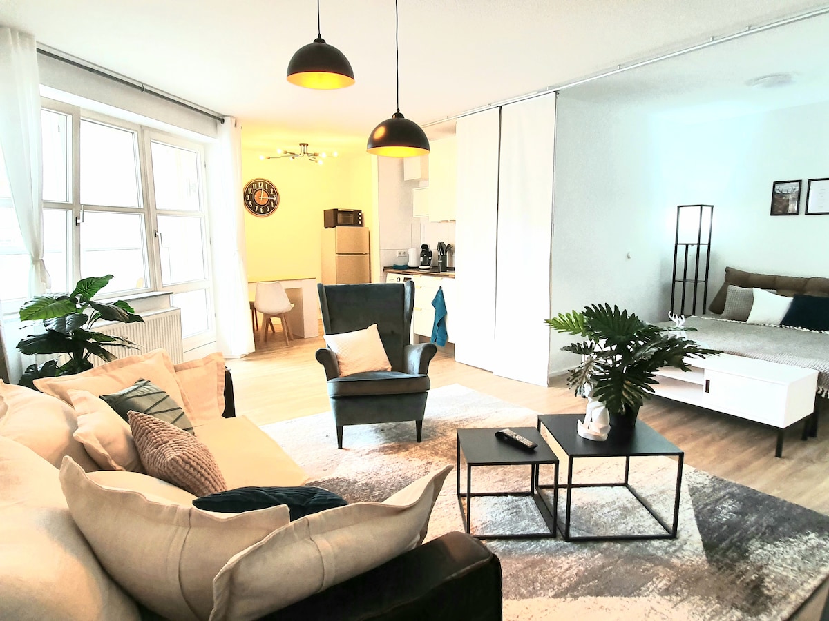 Светлая квартира недавно отремонтирована, меблирована и расположена прямо в центре Ганновера. Помимо большой двуспальной кровати размера Queen size (160 см), в гостиной и спальне есть 58-дюймовый большой телевизор 4K Smart TV с доступом Netflix и Amazon Prime, рабочий стол, шкаф и диван. Кухня с полным набором удобств, включая Стиральная машина и совершенно недавно отремонтированный санузел с душем.