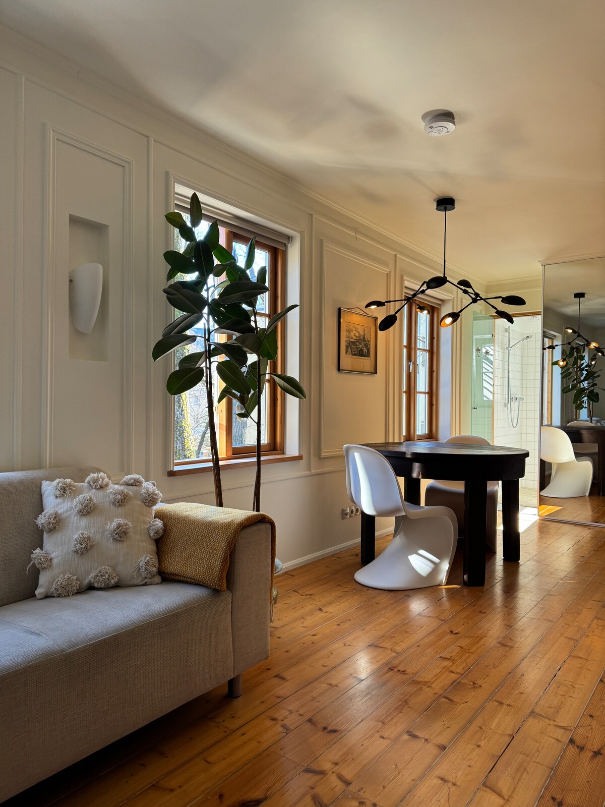 Уютная квартира в рустикальном стиле, наполненная теплом, природными текстурами и спокойной атмосферой. Отремонтированные апартаменты с двумя комнатами в районе Сикупилли, недалеко от аэропорта, железнодорожного вокзала и торговых центров. Удобное сообщение со Старым городом и портом на трамваях № 4 и № 2. Парковка вокруг дома бесплатная. Зарядная станция для электромобилей находится напротив дома. Квартира расположена на втором этаже, лифта в здании нет.
