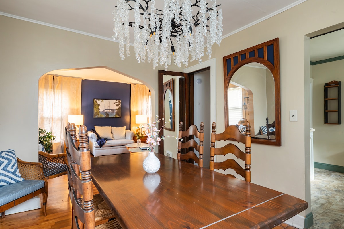 Добро пожаловать в The Blue Porch at 1510, ваше спокойное место для отдыха в центре Лансинга. Если вы приехали в город на конференцию, поиграть в гольф, посетить Мичиганский университет или просто отдохнуть, в этом очаровательном винтажном доме есть все необходимое, чтобы вы чувствовали себя расслабленно, заботливо и готовыми к новым открытиям. Внутри вы найдете деревянные полы, арочные дверные проемы, уютную кухню в фермерском стиле и большую спальню, идеально подходящую для отдыха. За пределами экранированного крыльца находится частный оазис. Гирлянды, удобные сиденья и идеальный бриз ждут вас!