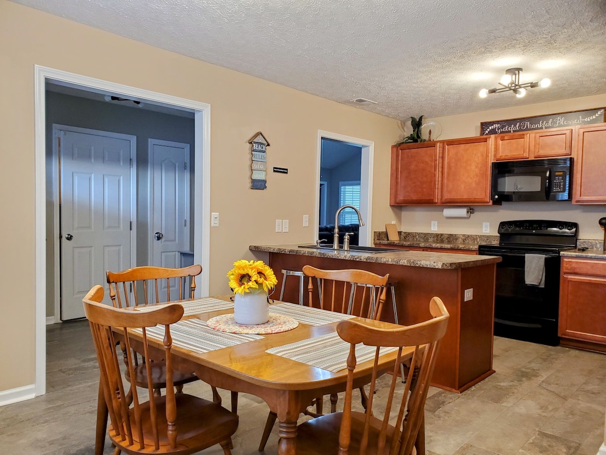 2 miles from Copper Ridge Wedding Venue. Enjoy this comfortable 3 bedroom home in a quiet neighborhood with a large private master suite. Your family and pets will love grilling out on the back deck overlooking the large fenced-in backyard. Prepare your meals in a fully stocked kitchen. Challenge each other to a game of pool in the garage-turned-game-room! Later, your family members can retreat to their separate bedrooms and enjoy watching their own flat screen TVs. Come enjoy your stay!